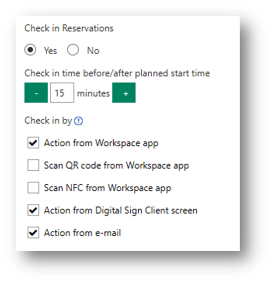 Both in the Backend and Workspace Booking app, we've adopted the new name and enhanced check-in options, allowing control over where check-ins can be performed.