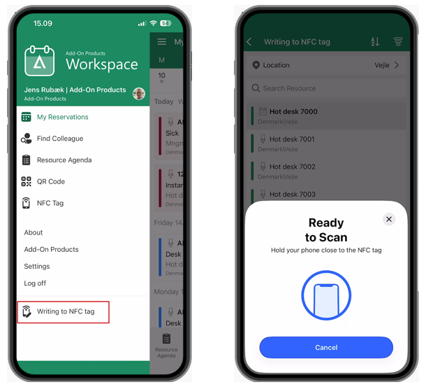 The Workspace Booking app can be used as a tool to “write” NFC tags, which can then be read by others.