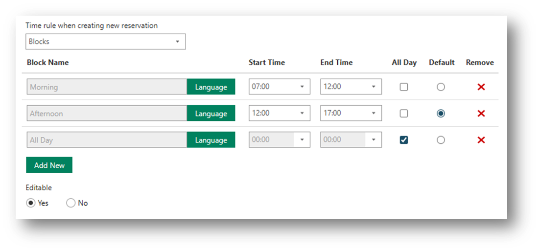 Imagine you have some resources that can only be booked for specific time blocks, let’s say desks can be reserved either as Morning, afternoon or the entire day. Now you can define these blocks, so it is easy from the Workspace booking app to quickly reserve the resources in these blocks.