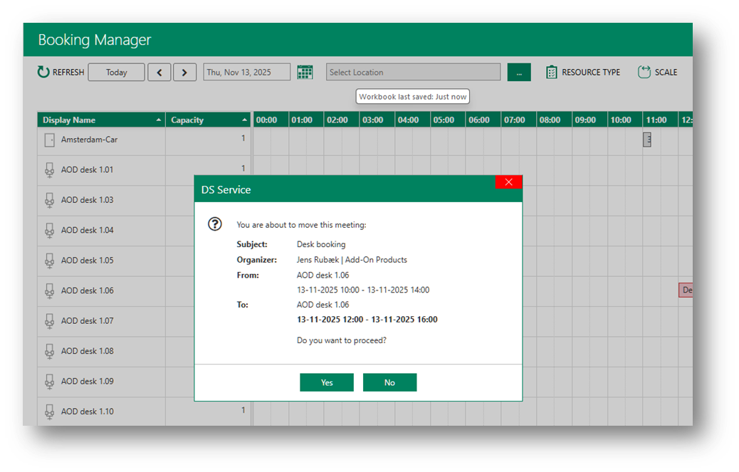 We have introduced a confirmation message box in the Booking Manager, which appears when you attempt to move a reservation using drag and drop with the mouse. This feature has been added to ensure that any changes to reservations are made intentionally, helping to prevent accidental modifications when relocating bookings.
