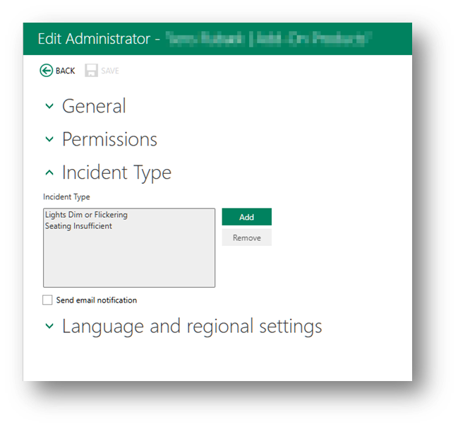 Additionally, for each administrator, it is now possible to specify whether they should receive an email notification when an incident for which they are responsible is reported. This setting provides greater flexibility and ensures that relevant administrators are promptly informed about new incidents assigned to them.