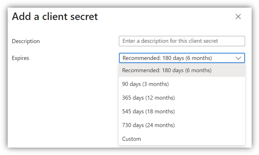 Choose [New client secret], a screen will appear as below: