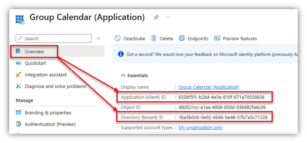 - Tenant ID: retrieved from Directory (Tenant) ID section.