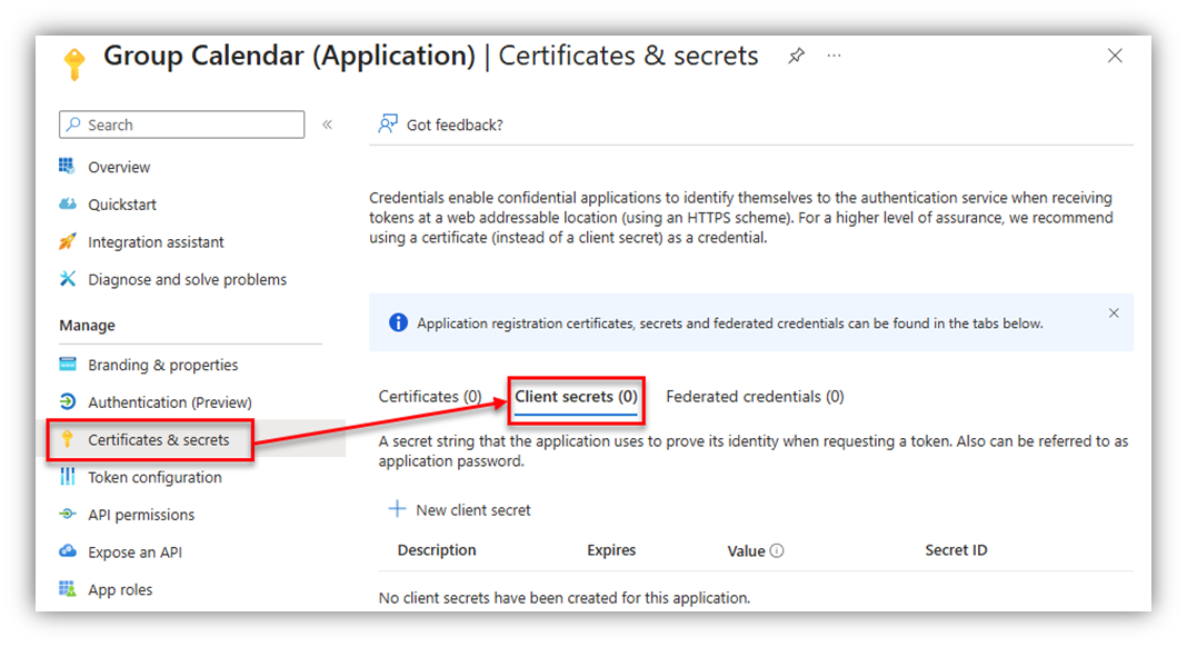 1. Remember to copy the client secret value from the Azure app immediately after adding a client secret because it will be hidden the next time you open the app’s Certificates & secrets page.